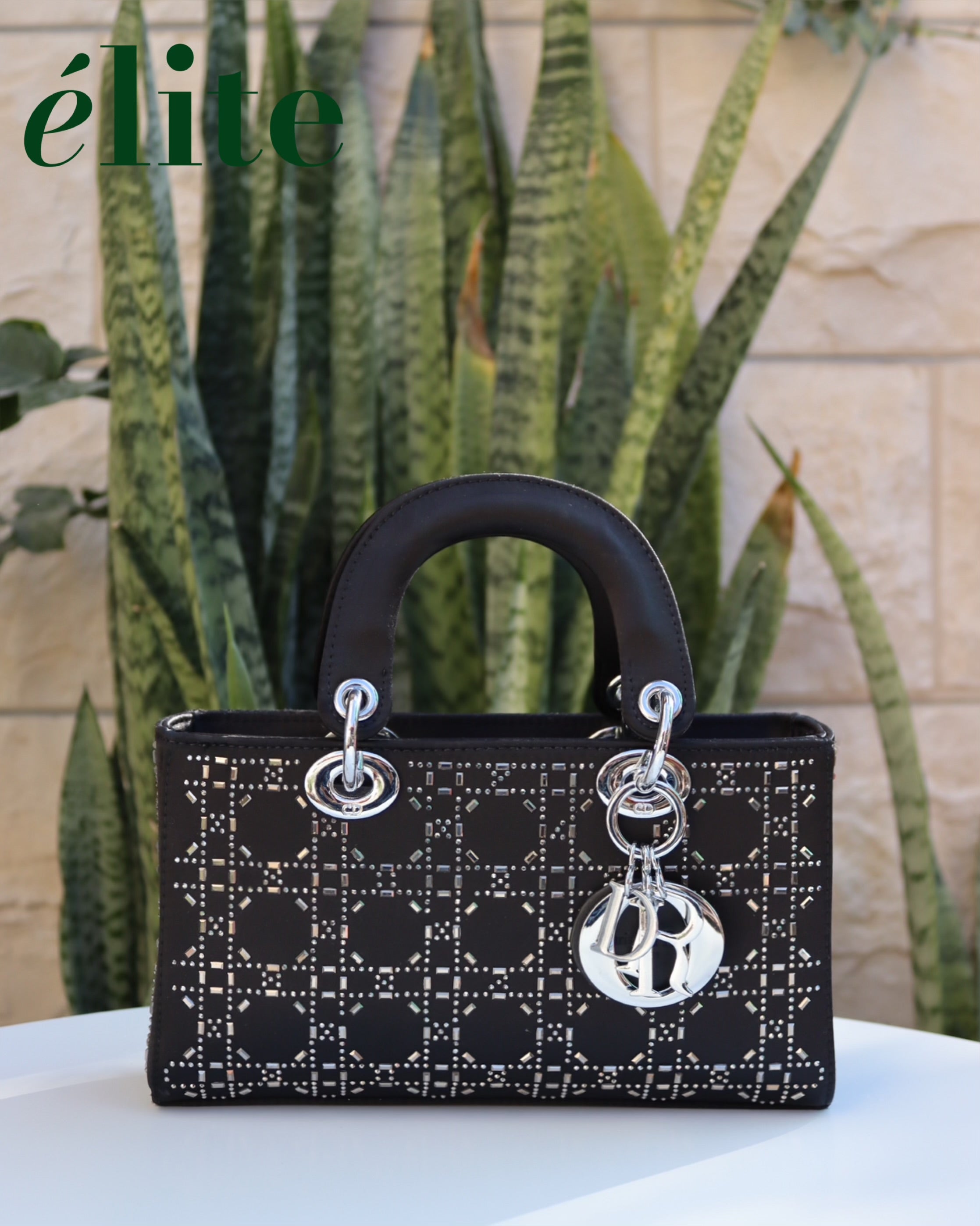 حقيبة ليدي ديور عرض ٢٤ سم مع حزام طويل، زركون فضي-مع علبة